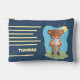 Cute kid pencil pouch featuring a brown bear on the front and an ice cream pattern on the back . Personalise it with the child's name .