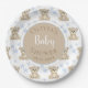 Brown Bear Blue Stars Watercolor Baby Shower Paper Plate