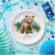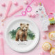 Prepare to enjoy and celebrate your upcoming baby shower with these delightful paper plates adorned with an adorable bear cub set against a scenic mountain backdrop. Plus, they're super easy to personalise!
