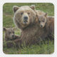 Brown Bear Cubs Cuddling with their Mother Square Sticker