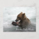 Brown bear eating salmon in Brooks Falls Alaska Postcard