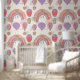 Playful and whimsical peel and stick wallpaper perfect to use as a kids wallpaper, nursery wallpaper, playroom wallpaper, and bathroom wallpaper for kids.