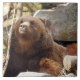 A close up photograph of a brown bear at the zoo printed on a ceramic tile.