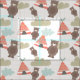 Cute, whimsical fabric features several teepees, patterned clouds, and little brown bears, great for kids who love the great outdoors.