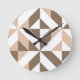Brown Beige Geometric Cube Pattern Round Clock