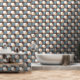 Brown Beige Grey Slate Blue Retro Art Pattern Wallpaper