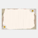 Beautiful vintage notes page in beige and brown colours, decorated with daisy blossoms and postage stamps in the background. Fill the lines with your own notes or any other text.