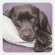 Aww who can resist the sweet face of a Labrador Retriever puppy dog? These canine stickers features an image of a brown / black Labrador Retriever puppy dog resting on a pile of pillows highlighted by a purple background.