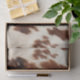 The cowhide leather details are simulated in the artwork. No actual cowhide or leather will be used in the making of this product.