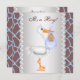 Brown Blue Giraffe Stork Baby Boy Shower Invitation