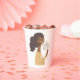 Brown boho woman bouquet of hearts party paper cups