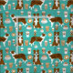 Brown border collie dog coffee lover turquoise fabric