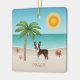 Brown Boston Terrier At A Tropical Summer Beach Ceramic Ornament