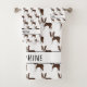 Destei's original cartoon illustration of a cute chocolate brown and white coat colour Boston Terrier breed dog as a pattern. There is also a personalizable text area on each towel ideal for a name or other custom text.