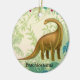 Original fine art design of a brown Brachiosaurus dinosaur by artist Carolyn McFann of Two Purring Cats Studio printed on a quality and easily customisable Christmas ornament. Great gift idea for birthdays, holidays or any occasion for kids to adults!