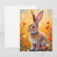 Brown Bunny Floral Field Animal Painting Card