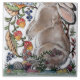This is the bottom tile of a two-piece ceramic tile mural, featuring a cute tan bunny rabbit, two colourful birds, and myriad Jacobean or chinoiserie - inspired florals in an array of colours. Purchase the top tile and bottom tile in this Collection to complete your mural, available with 4 1/4" tiles or 6" tiles. Great as a backsplash artwork. A cute home decor accent that will brighten any space - a kitchen, breakfast nook, bathroom, or any room. Whimsical, unique, original artwork & design by Tuzi Williams. Be sure to purchase the set with either right or left facing tiles!