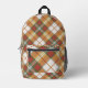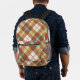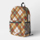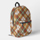 This customisable backpack features a chequered pattern of brown, red, white, and green colours.