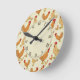 Brown Chickens Seamless Pattern Design. Farm animals; Rooster and Hen Graphic Design. Roman Numbered Clock. Red and Brown.