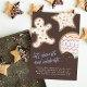 Invite kids of all ages to decorate Christmas cookies and celebrate the holiday season with this festive cookie decorating party invitation. Cookies in the shape of a gingerbread man, star, and circle are playfully decorated with frosting and a variety of colourful sprinkles. The illustration is placed on a brown background with a speckled texture, and accompanied by handwritten script lettering with the phrase "let's decorate and celebrate..."