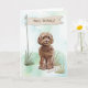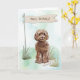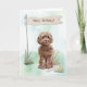 Fluffy, friendly, and full of love, this Brown Cockapoo birthday card is as sweet as the breed itself. The adorable pup sits in a soft watercolor landscape of grass and sky, with a rustic flag-style banner floating above to mark the occasion. A heartwarming way to send birthday wishes to anyone who adores this affectionate and playful breed.