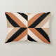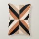Modern accent pillow design featuring geometric stripes in warm brown tones with a contrast of black.