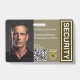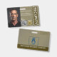 Professional ID badge for private security officers featuring your name, title, photo, QR code, ID number, and expiration date. Includes your company’s branding and contact details on the back. A sleek brown and gold design ideal for formal uniforms and site patrol.