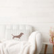 The timeless design of a brown sausage dog lost in a sea of beige stripes. Decorate your home fun and stylish with this unique design.