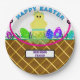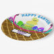 Brown Easter Basket Yellow Blue Striped Chick Egg Paper Plate