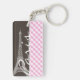 Brown Eiffel Tower & Pink Plaid Key Ring