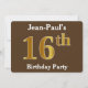Brown, Faux Gold 16th Birthday Party; Custom Name Invitation