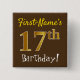 Brown, Faux Gold 17th Birthday, With Custom Name 15 Cm Square Badge