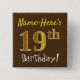Brown, Faux Gold 19th Birthday, With Custom Name 15 Cm Square Badge