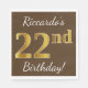 Brown, Faux Gold 22nd Birthday + Custom Name Napkin