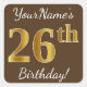 Brown, Faux Gold 26th Birthday + Custom Name Square Sticker