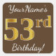 Brown, Faux Gold 53rd Birthday + Custom Name Square Sticker