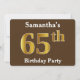 Brown, Faux Gold 65th Birthday Party; Custom Name Invitation
