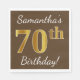 Brown, Faux Gold 70th Birthday + Custom Name Napkin