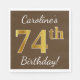 Brown, Faux Gold 74th Birthday + Custom Name Napkin