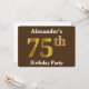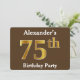 Brown, Faux Gold 75th Birthday Party; Custom Name Invitation