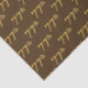 This tissue paper design features the ordinal number "77th" with a faux/imitation gold-like colouring. It also features a brown coloured background. It could perhaps be used with gifts being given for somebody’s seventy seventh birthday, or maybe for a married couple’s seventy seventh wedding anniversary, or for some other 77th event or occasion. [~Z0000155]