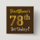 Brown, Faux Gold 78th Birthday, With Custom Name 15 Cm Square Badge