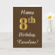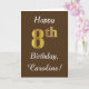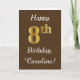 Brown, Faux Gold 8th Birthday + Custom Name Card