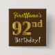 Brown, Faux Gold 92nd Birthday, With Custom Name 15 Cm Square Badge