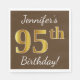 Brown, Faux Gold 95th Birthday + Custom Name Napkin