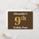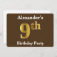 Brown, Faux Gold 9th Birthday Party; Custom Name Invitation