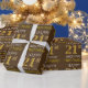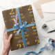 This wrapping paper design features a message like "HAPPY 21st BIRTHDAY", with the "21st" having a faux/imitation gold appearance. It also features a name that can be customised, and a brown coloured background. It could perhaps be used when wrapping gifts being given for somebody’s twenty first birthday. [~Z0000133]