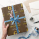 This wrapping paper design features a message like "HAPPY 6th BIRTHDAY", with the "6th" having a faux/imitation gold appearance. It also features a custom name, and a brown coloured background. It could perhaps be used when wrapping gifts being given for somebody’s sixth birthday. [~Z0000133]