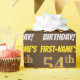 This wrapping paper design features a message like "FIRST-NAME’S 54th BIRTHDAY!", with the "54th" having a faux/imitation gold-like colour appearance, and with the name and "BIRTHDAY" in a fun, bold font. The name can be personalised, and the background is coloured brown. Wrapping paper like this could perhaps be used when wrapping birthday gifts being given to somebody in celebration of their fifty fourth birthday. [~Z0000211]