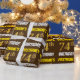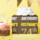 This wrapping paper design features a message like "FIRSTNAME’S 74th BIRTHDAY!", with the "74th" having a faux/imitation gold-like colour appearance, and with the name and "BIRTHDAY" in a fun, bold font. The name can be customised, and the background is coloured brown. Wrapping paper like this could perhaps be used when wrapping birthday gifts being given to somebody in celebration of their seventy fourth birthday. [~Z0000211]